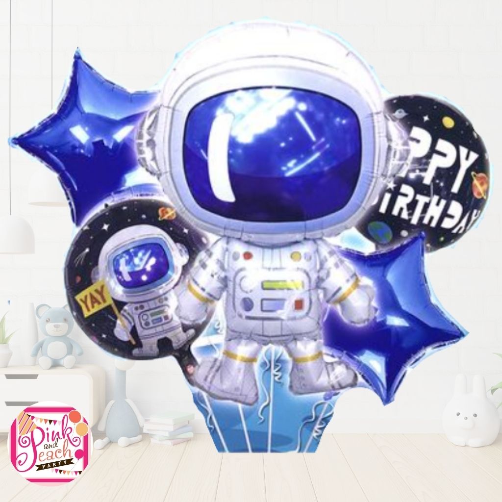 If you're on DIY (do-it-yourself) planning on an outer space theme, this balloon set would be a beautiful addition. With large astronaut foil balloons paired with stars and round balloons, will complete the set up.