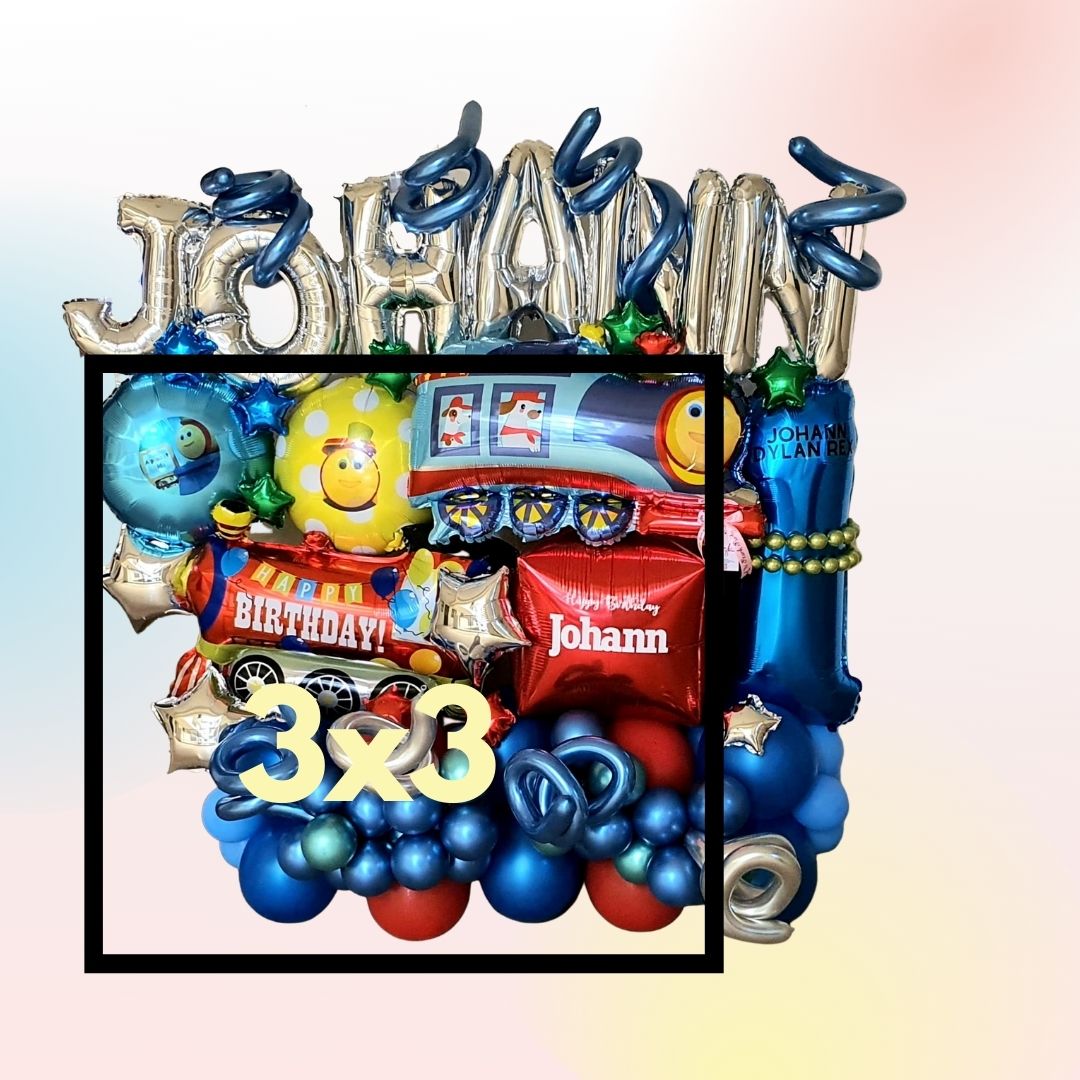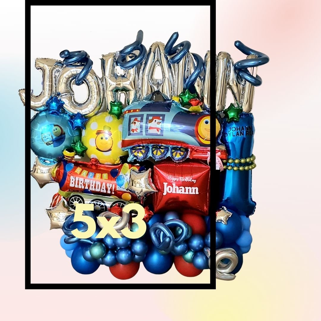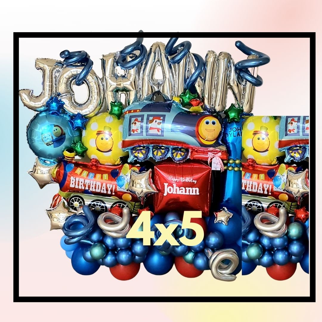 Choo! Choo! Here's Bob the Train balloon decor. It can be your backdrop matching your themed cake or just a birthday surprise for th elittle ones.