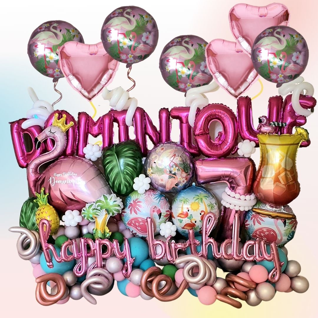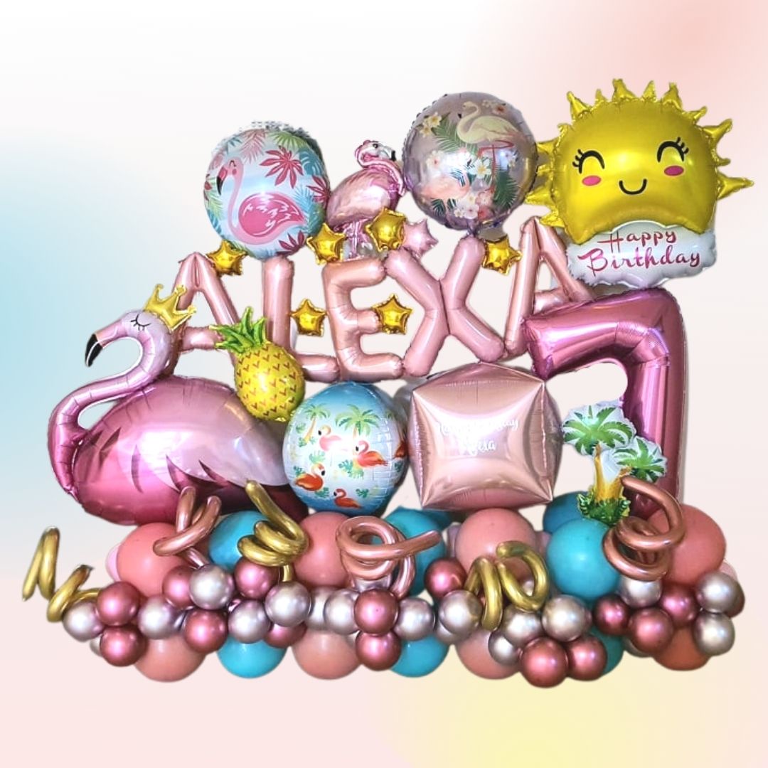 Let's flamingale! Channeling tropical pink flamingo theme for your little girls big day. Be it your background or just surprise them with this huge balloon arrangement.