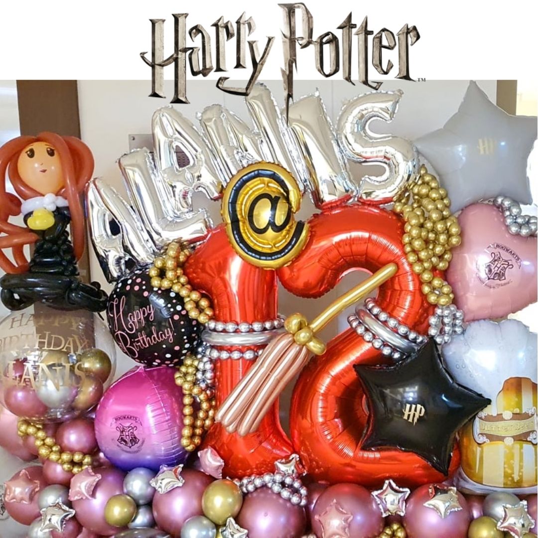 With spell books and dress robes, transform every party place with this balloon bouquet for your magical Harry Potter themed birthday.